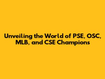 Unveiling The World Of PSE, OSC, MLB, And CSE Champions