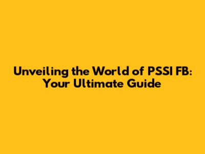Unveiling The World Of PSSI FB: Your Ultimate Guide