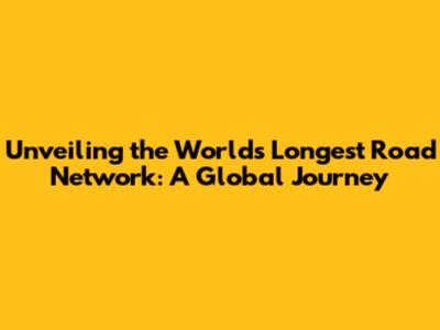 Unveiling The World's Longest Road Network: A Global Journey