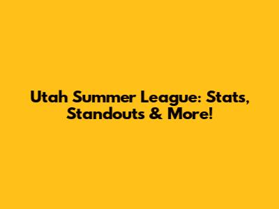 Utah Summer League: Stats, Standouts & More!