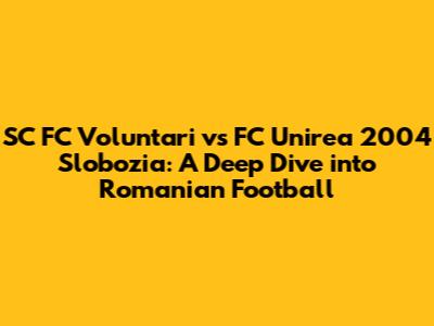Get ready, football fanatics! Today, we're diving deep into an exciting matchup in Romanian football: SC FC Voluntari versus FC Unirea 2004 Slobozia. This isn't just another game; it's a clash of strategies, a battle of wills, and a showcase of talent. We'll break down everything you need to know, from the teams' histories and current form to key players and potential game-changers. So, buckle up and let's get started!