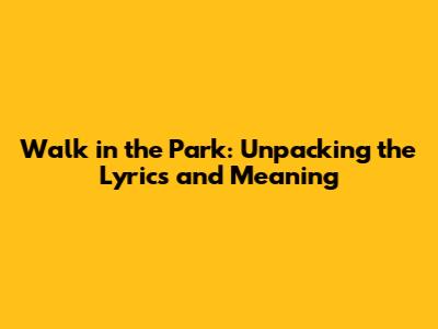 Walk In The Park: Unpacking The Lyrics And Meaning