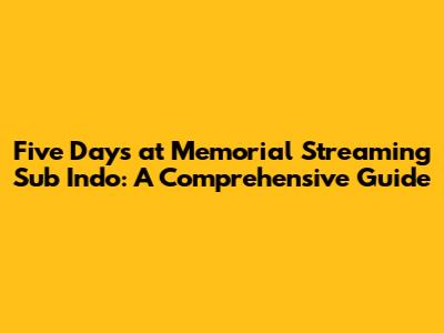 Hey guys! Are you looking to dive into the gripping drama of "Five Days at Memorial" and need to know where to stream it with Indonesian subtitles? You've come to the right place. This article will walk you through everything you need to know to watch this compelling series, ensuring you don't miss a single moment of the story. We'll cover where to find the series, how to access Indonesian subtitles, and what makes this show a must-watch. So, let's get started!