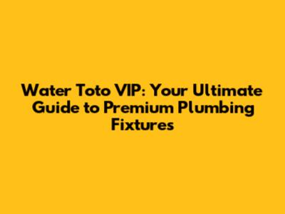 Water Toto VIP: Your Guide To Premium Plumbing Fixtures