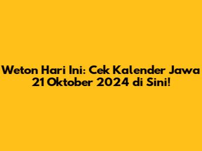 Weton Jawa: Cek Kalender Jawa 21 Oktober 2024 Di Sini!