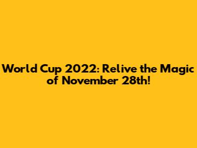 Hey sports fanatics! Get ready to dive back into the electrifying atmosphere of the World Cup 2022! We're talking about a day packed with heart-stopping goals, nail-biting finishes, and the sheer joy of the beautiful game. Today, we are going to relive the matches that unfolded on November 28th. So, grab your snacks, get comfy, and let's journey back to the unforgettable moments, the stunning plays, and the unexpected twists that made this day a highlight of the tournament! We'll be looking back at all the key matches, the standout performances, and the memorable moments that had fans around the globe on the edge of their seats. Whether you're a die-hard football aficionado or just love a good underdog story, this is a recap you won't want to miss. Get ready to feel the passion, the drama, and the pure excitement of World Cup football all over again. The World Cup is one of the biggest sporting events in the world, and every match is full of surprises. Let's see what happened on November 28th!