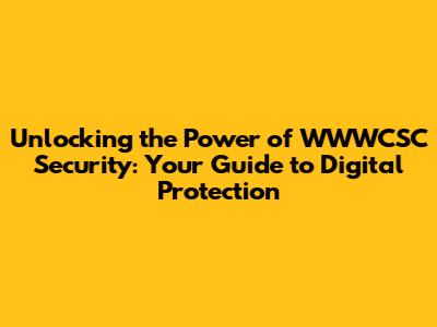 Unlocking the Power of WWWCSC Security: Your Guide to Digital Protection
