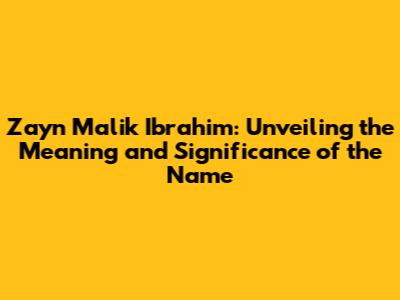 Zayn Malik Ibrahim: Meaning And Significance Of The Name