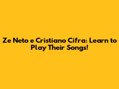 Ze Neto E Cristiano Cifra: Learn To Play Their Songs!